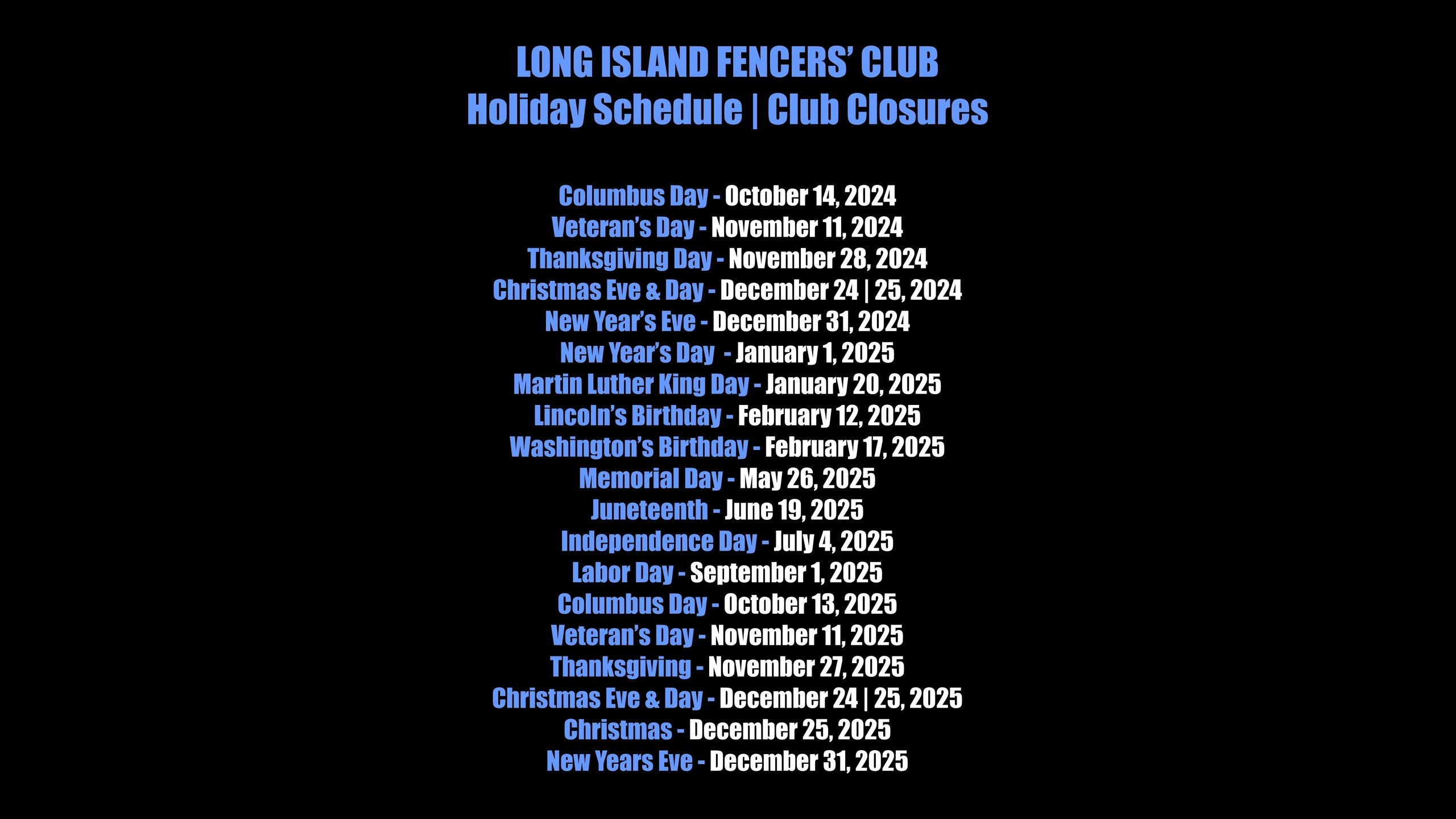 Long Island Fencers Club East and West